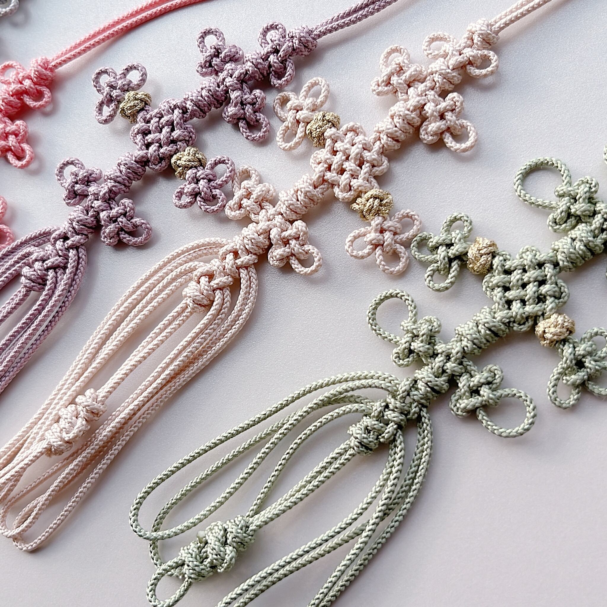 海外から直輸入したノリゲ(飾り用組紐)です。朝鮮半島の伝統的な工芸品で、一つひとつ手作りで丁寧に作られた作品となります。本来はチマチョゴリを装飾する役割の製品ですが、近年ではアクセサリーやストラップ、バッグやスマートフォンのチャームとして使うシーンが増えています。また、お洋服や小物のアクセントにも取り入れ易いよう、ふんわりとした優しいパステルカラーのものを集めました。