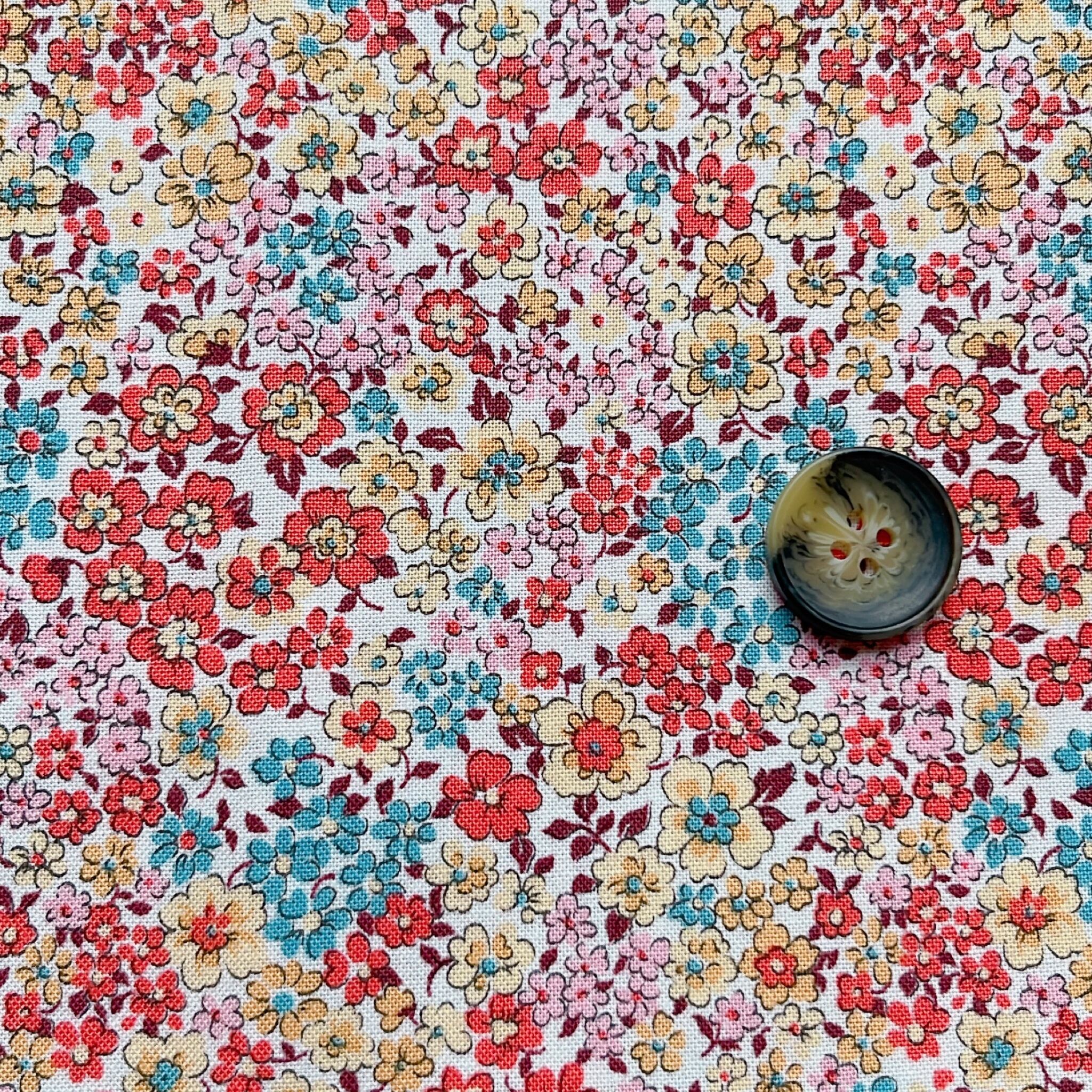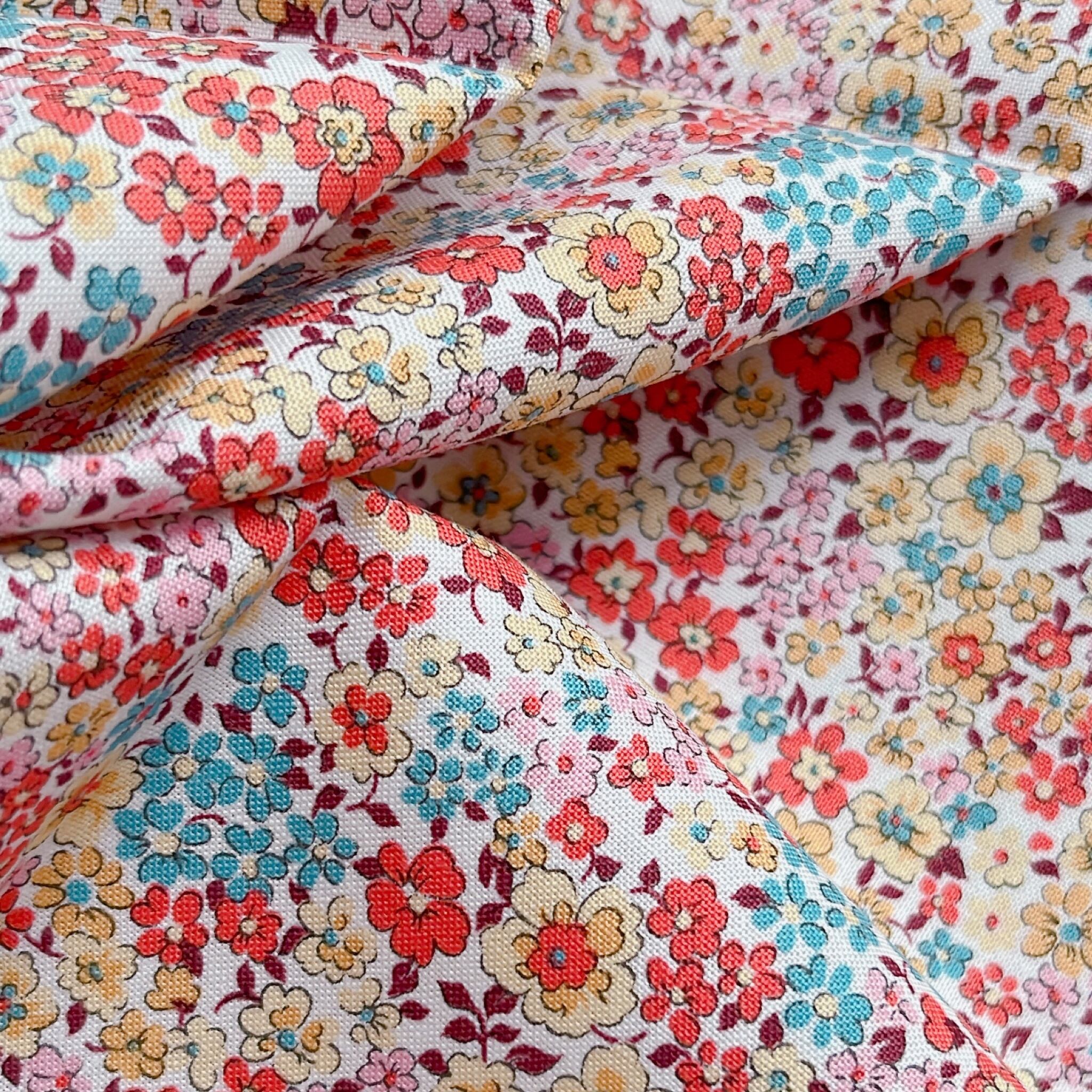 海外から買い付けた綿100%のリバティプリント柄の生地です。人気の花柄の中から、アクセントとして使いやすく、華やかさのある生地を中心にセレクト。単体での使用はもちろん、他の生地と組み合わせての利用もオススメです。