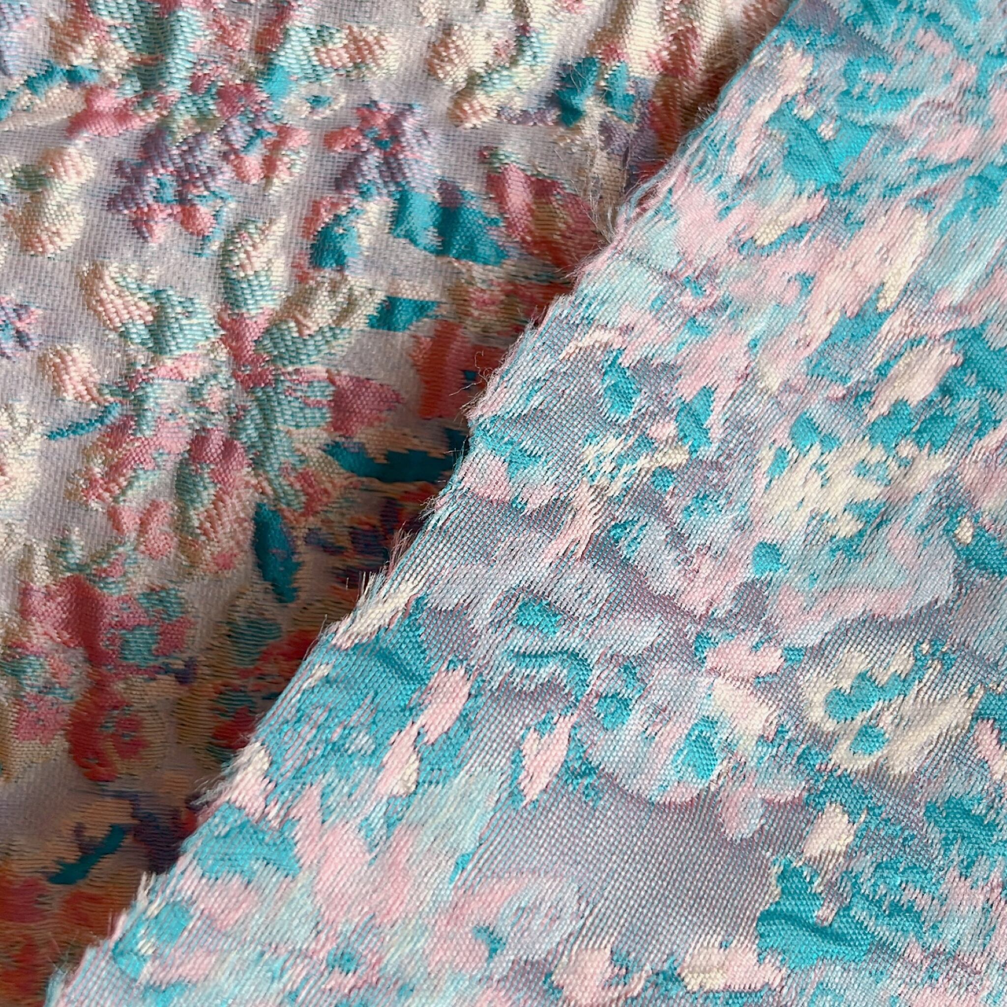 海外から買い付けたファンシージャガード生地です。生地全体にニュアンスデザインの花柄をあしらった華やかな生地です。日本ではあまり見かけない独特な柄物の生地なので、1枚でスカートなどのファッションアイテムを仕立てるのにもオススメです。