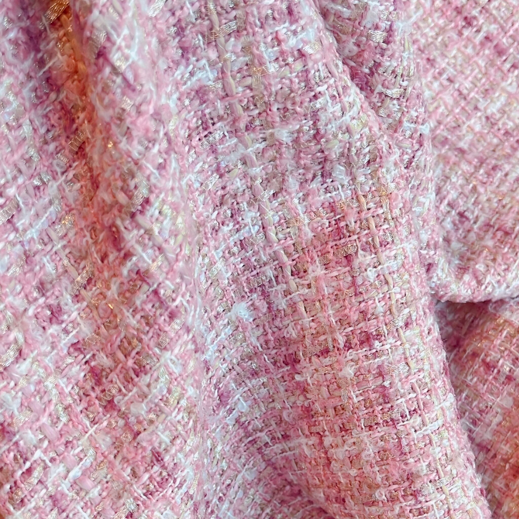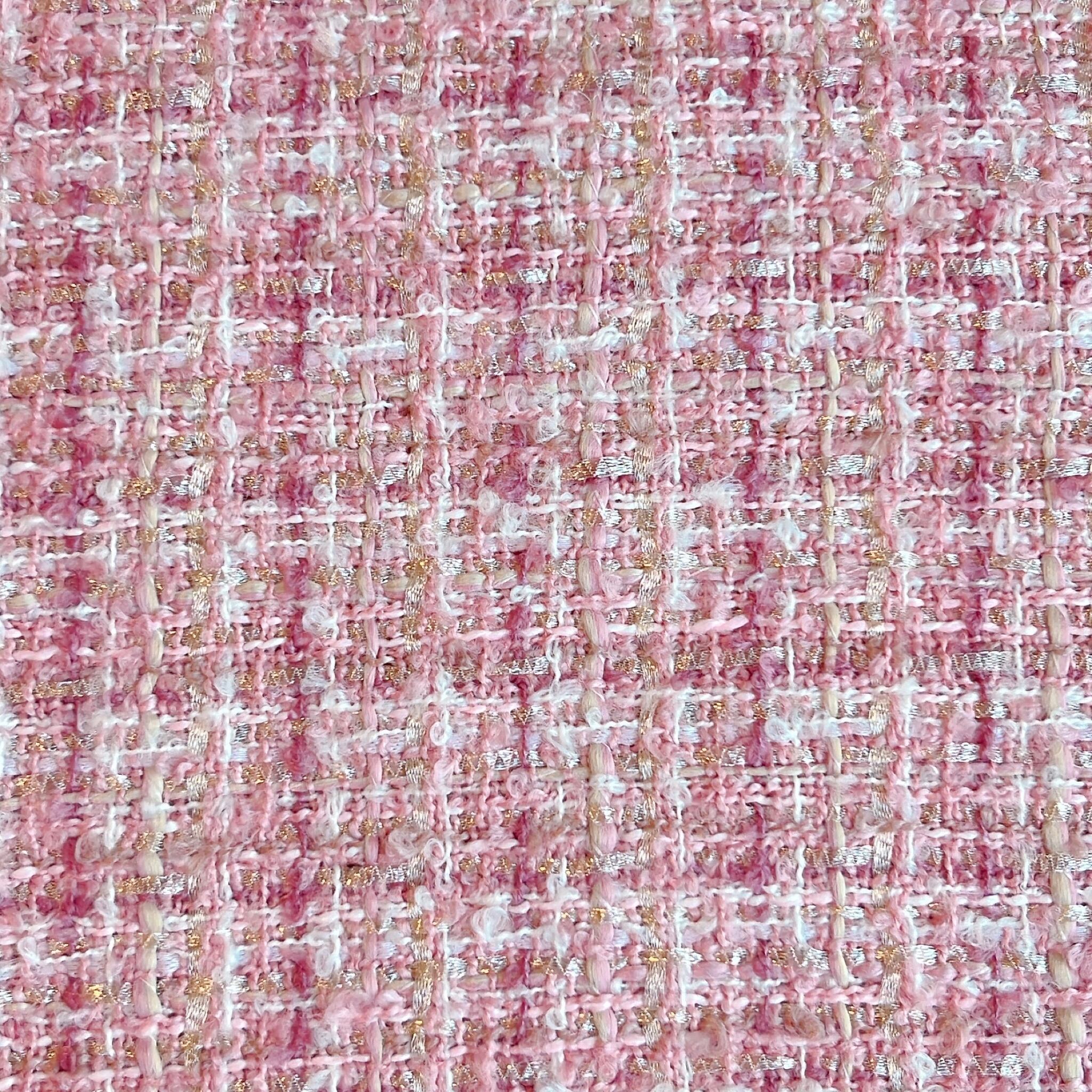 海外から買い付けたファンシーツイードの生地です。暖かな色味に、太めのヤーンで織り込まれたツイード柄が華やかで可愛らしいツイード生地です。冬らしく暖かみのあるツイード生地で、厚みがあり、冬物のお仕立てに向いています。ツイード生地の中でも手触りが良く、滑らかな手触りの生地となっていますので、お洋服やお召し物のお仕立てにもオススメです。