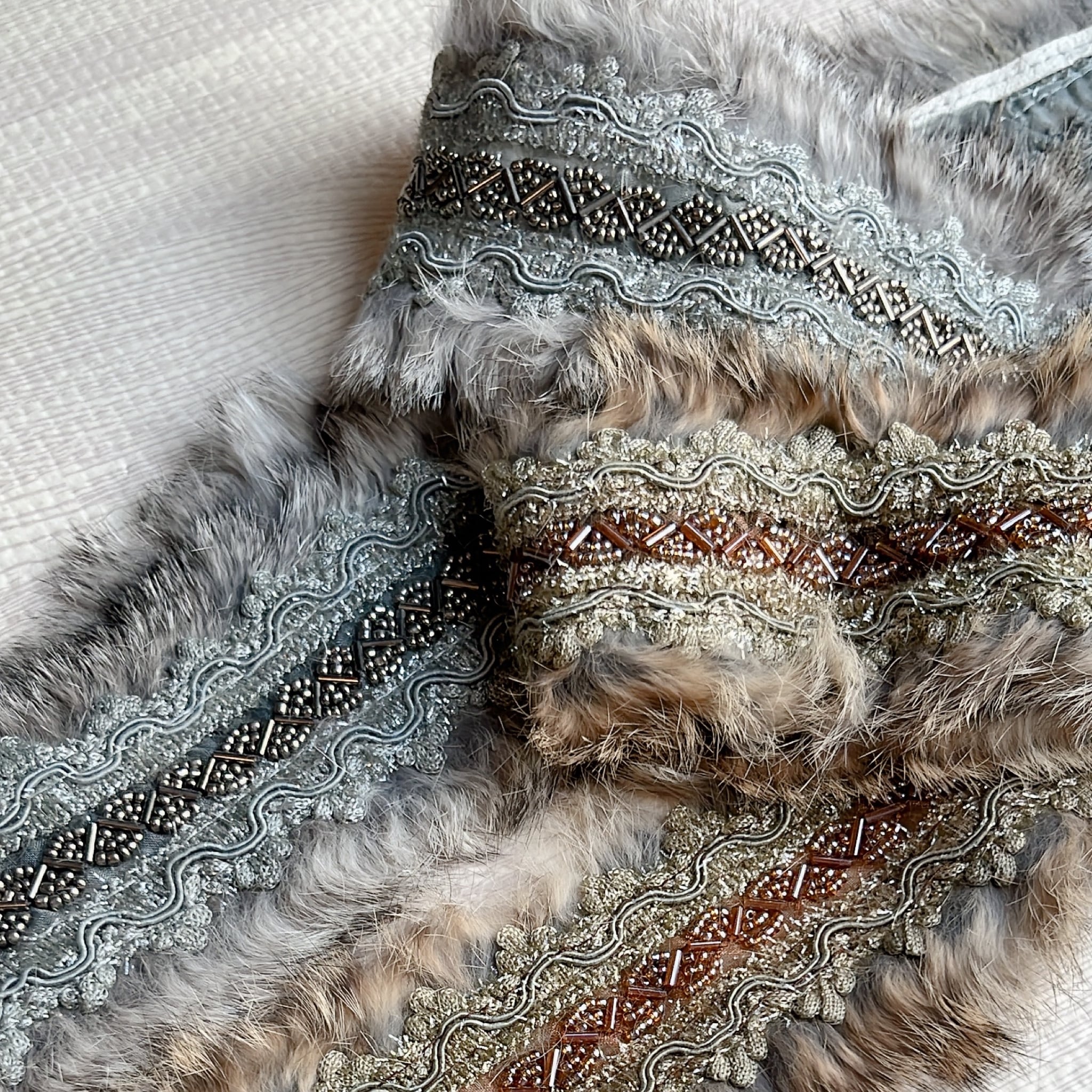 海外から買い付けたフェイクファーを使用した刺繍テープです。